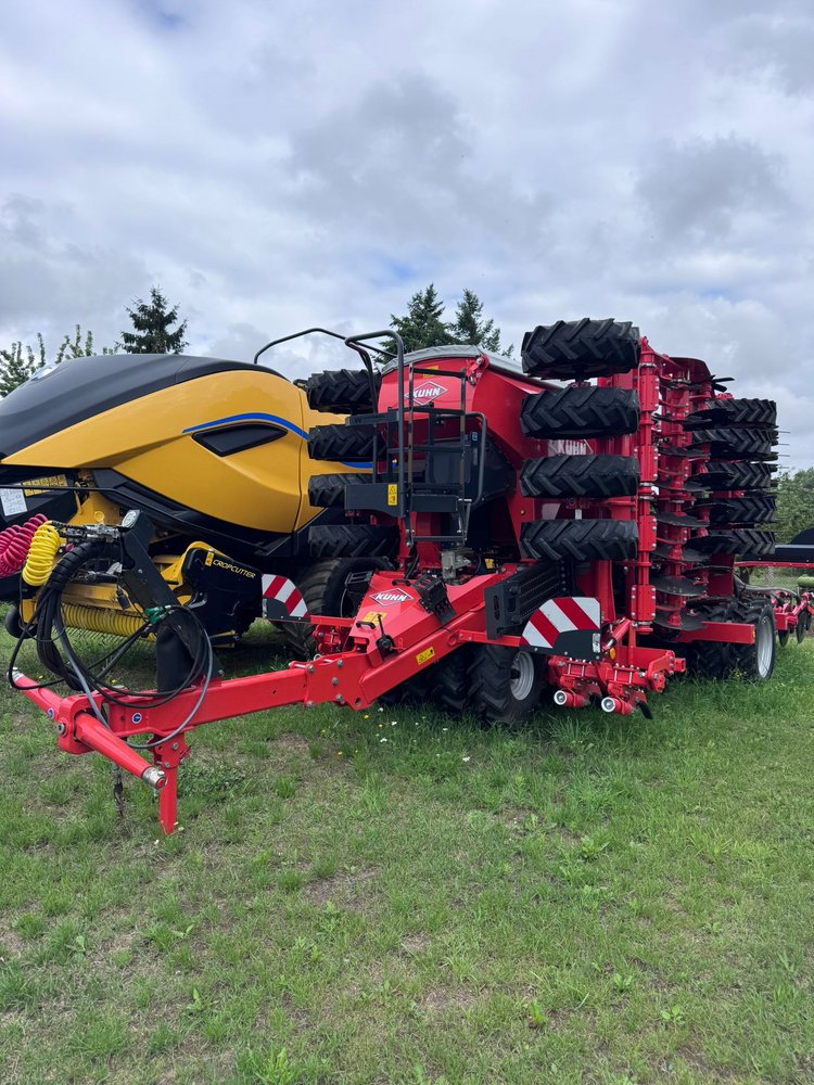 angeordnete Doppelscheibenschare mit beschichteten Abstreifern u. Saatstriegel